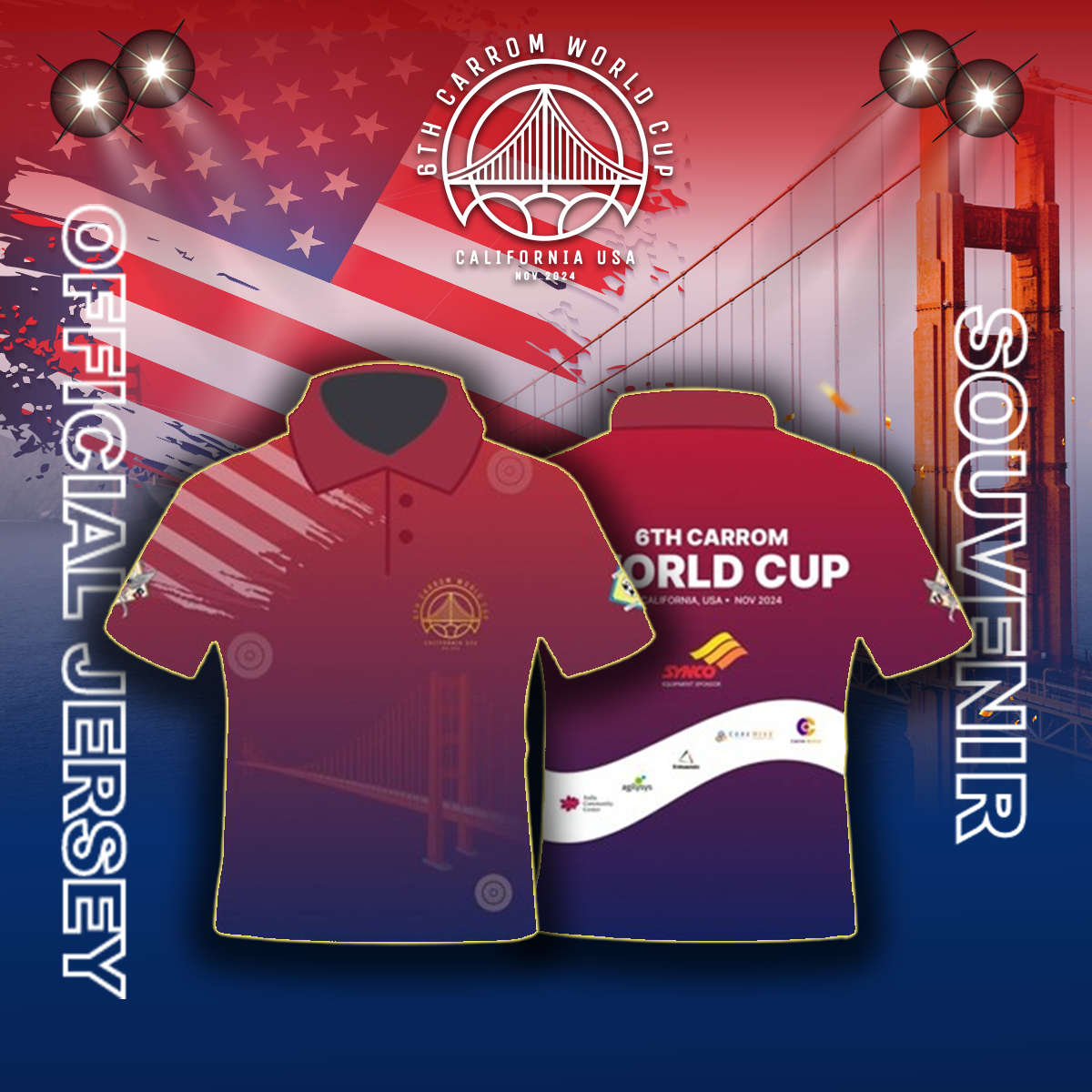 - 6th Carrom World Cup souvenir T-shirt with World Cup & sponsor branding